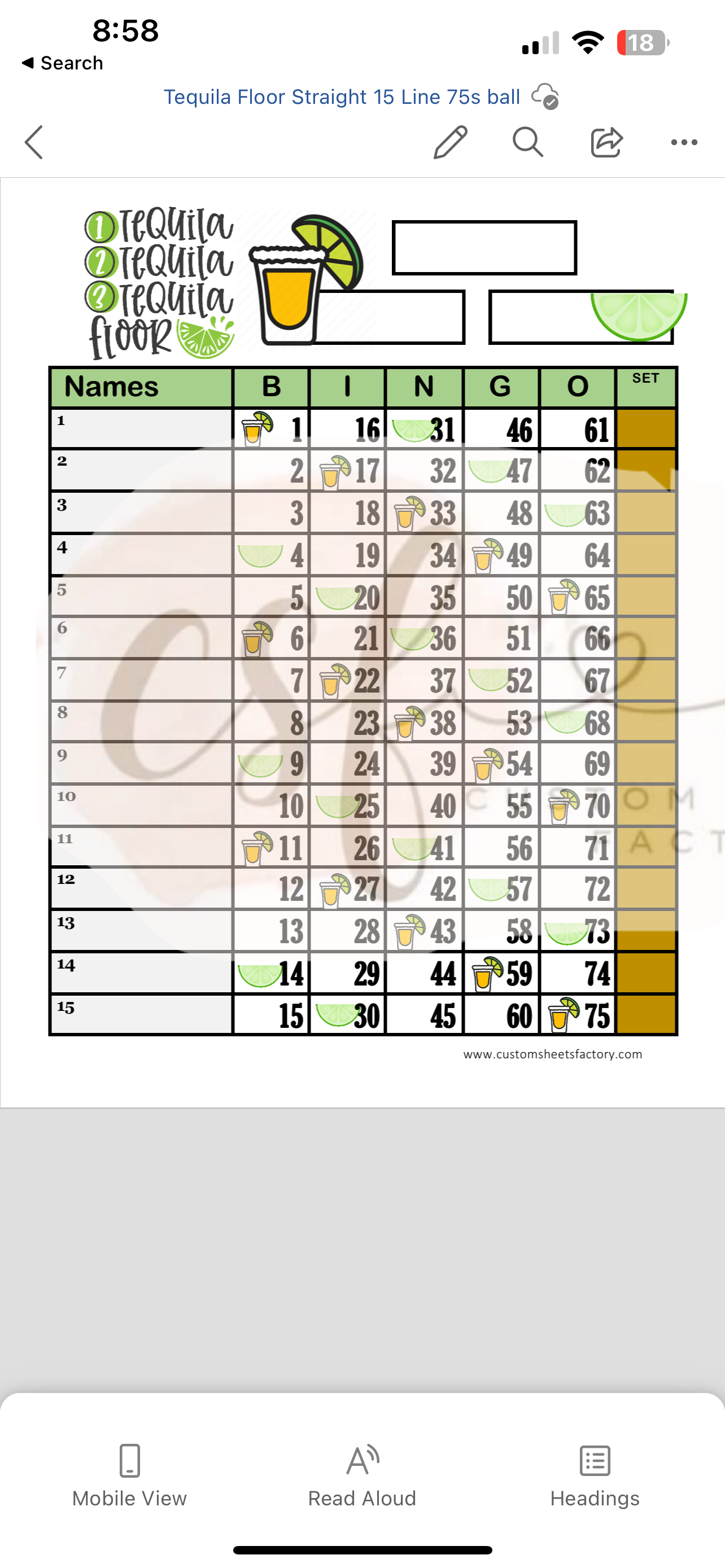 1,2,3 Tequila Floor - 15 Line - 75 Ball