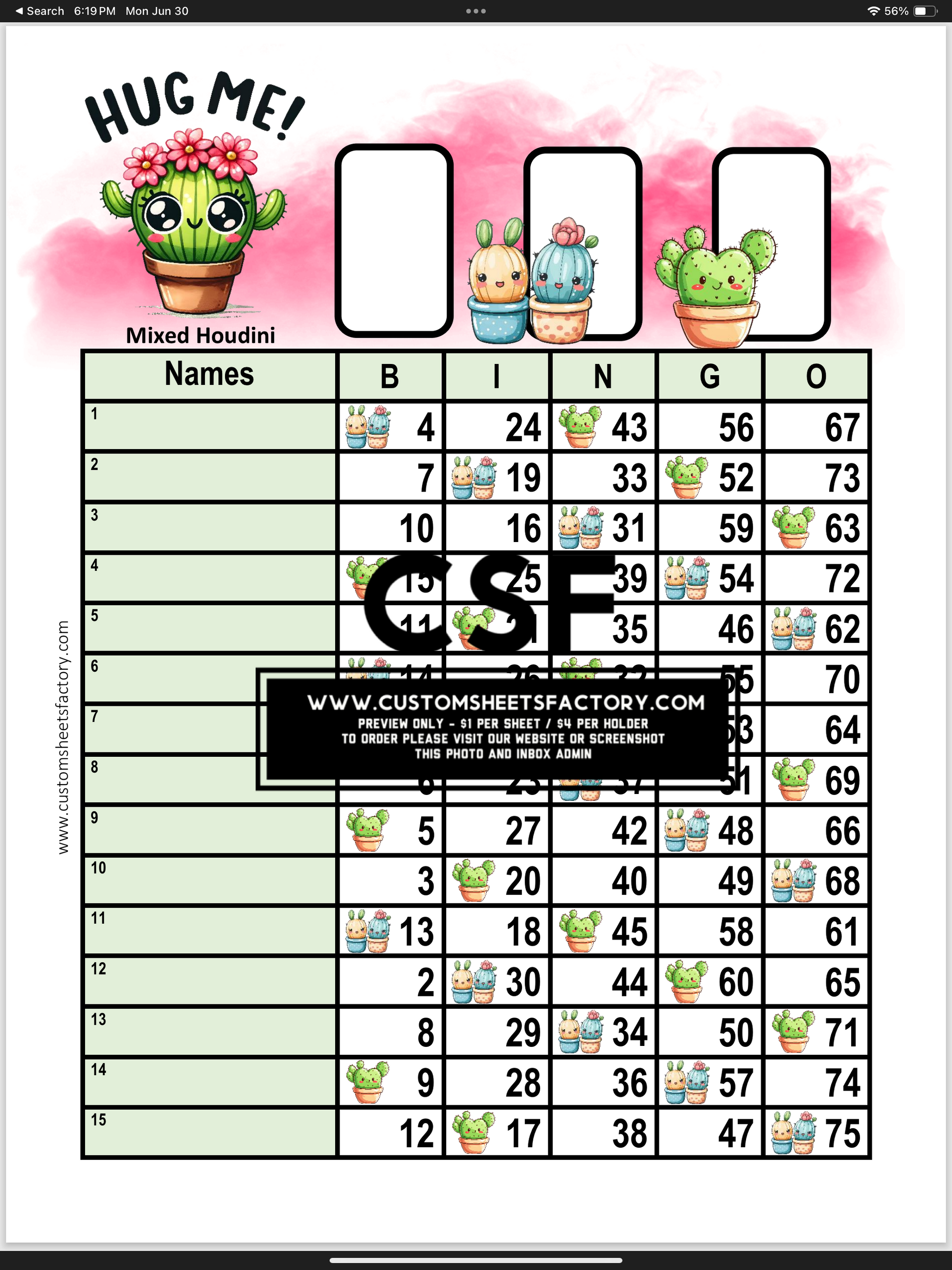 14 Sheets Total = 7 Straight & 7 Mixed Houdini