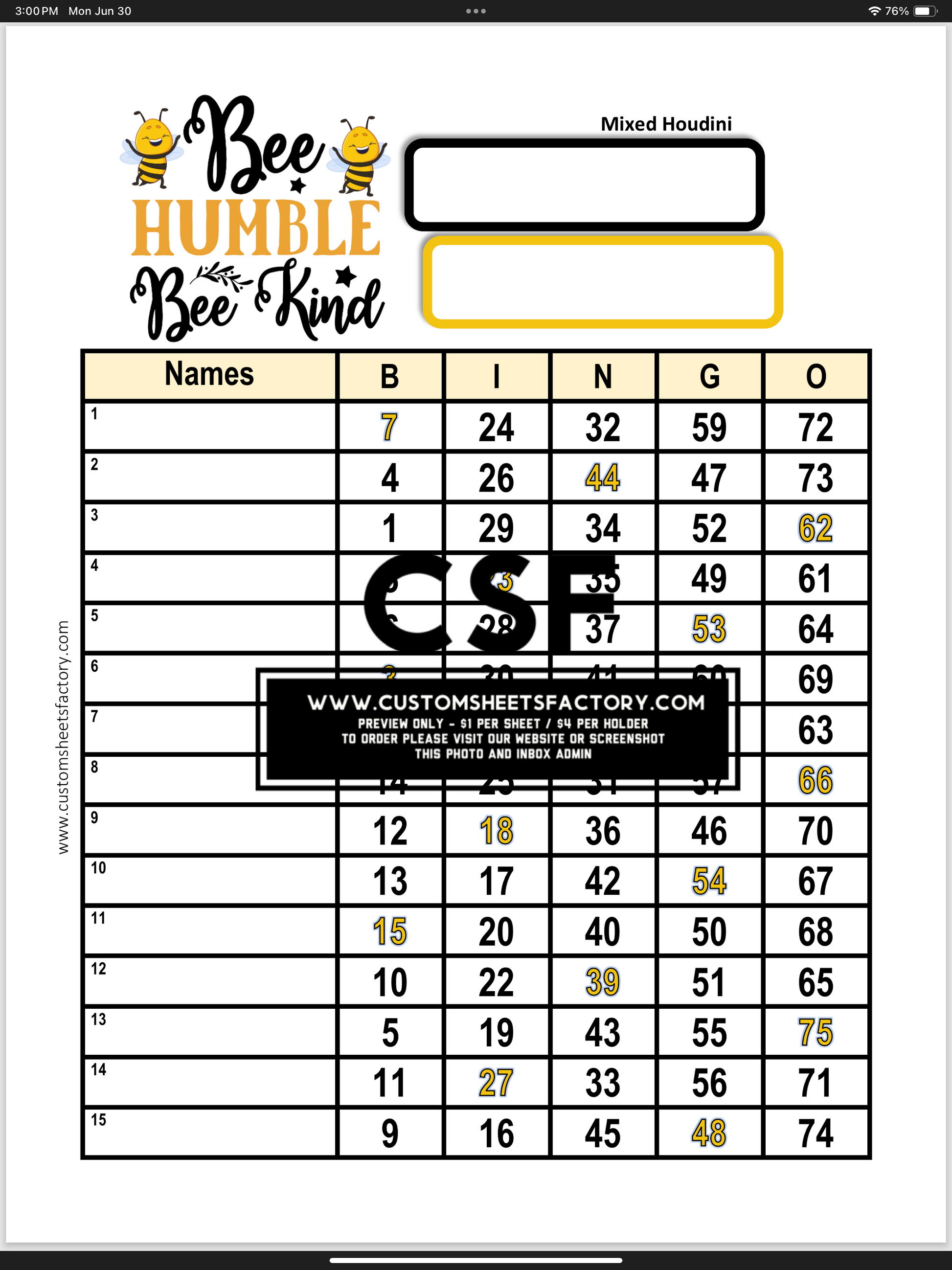14 Sheets Total = 7 Straight & 7 Mixed Houdini