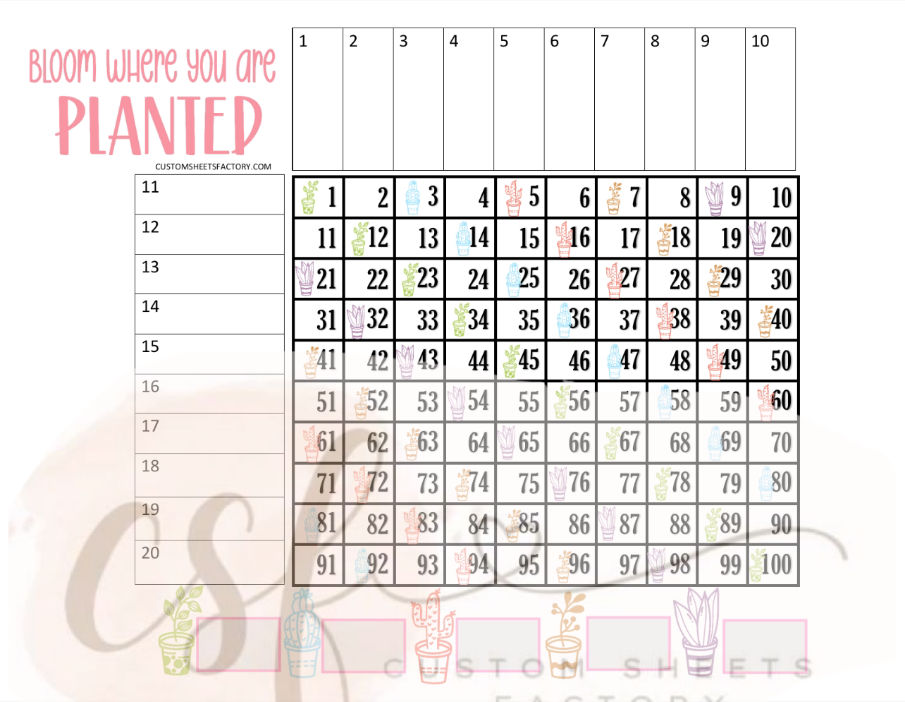 Bloom where you are planted grid - 20 Line - 100 Ball