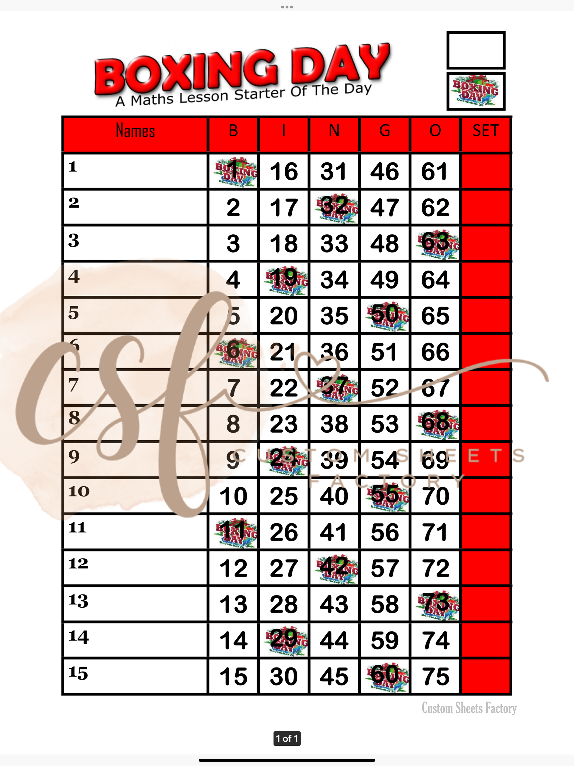 Boxing Day - 15 line - 75 ball