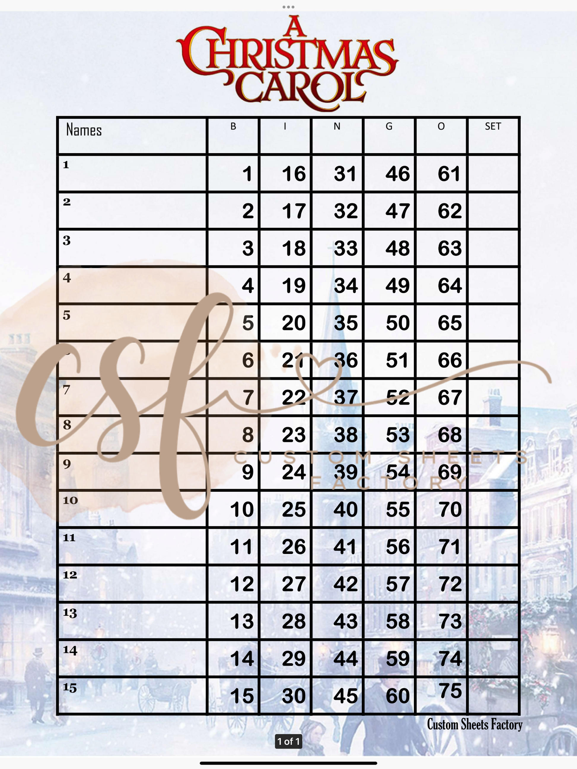 Christmas Carol - 15 line - 75 ball