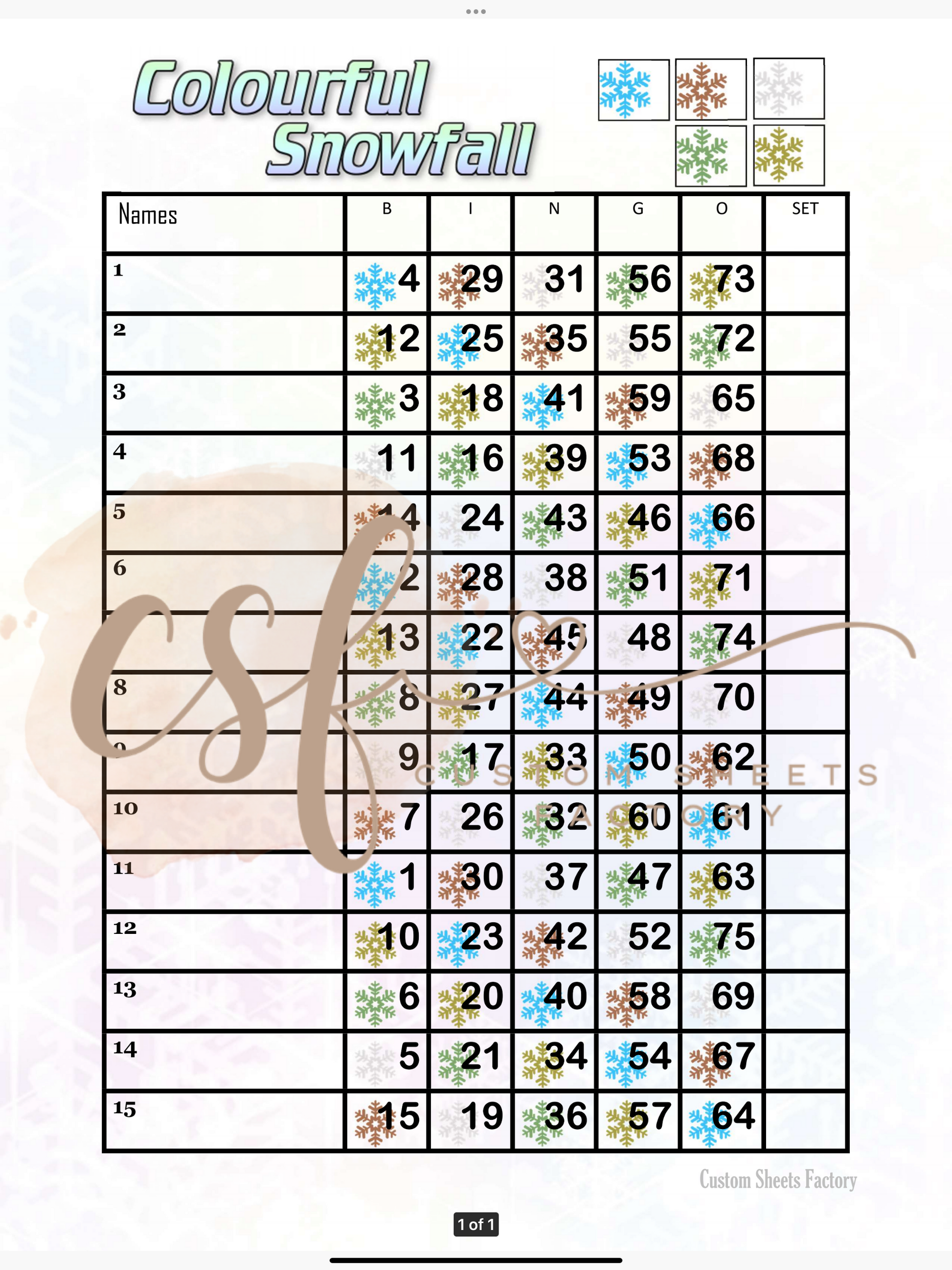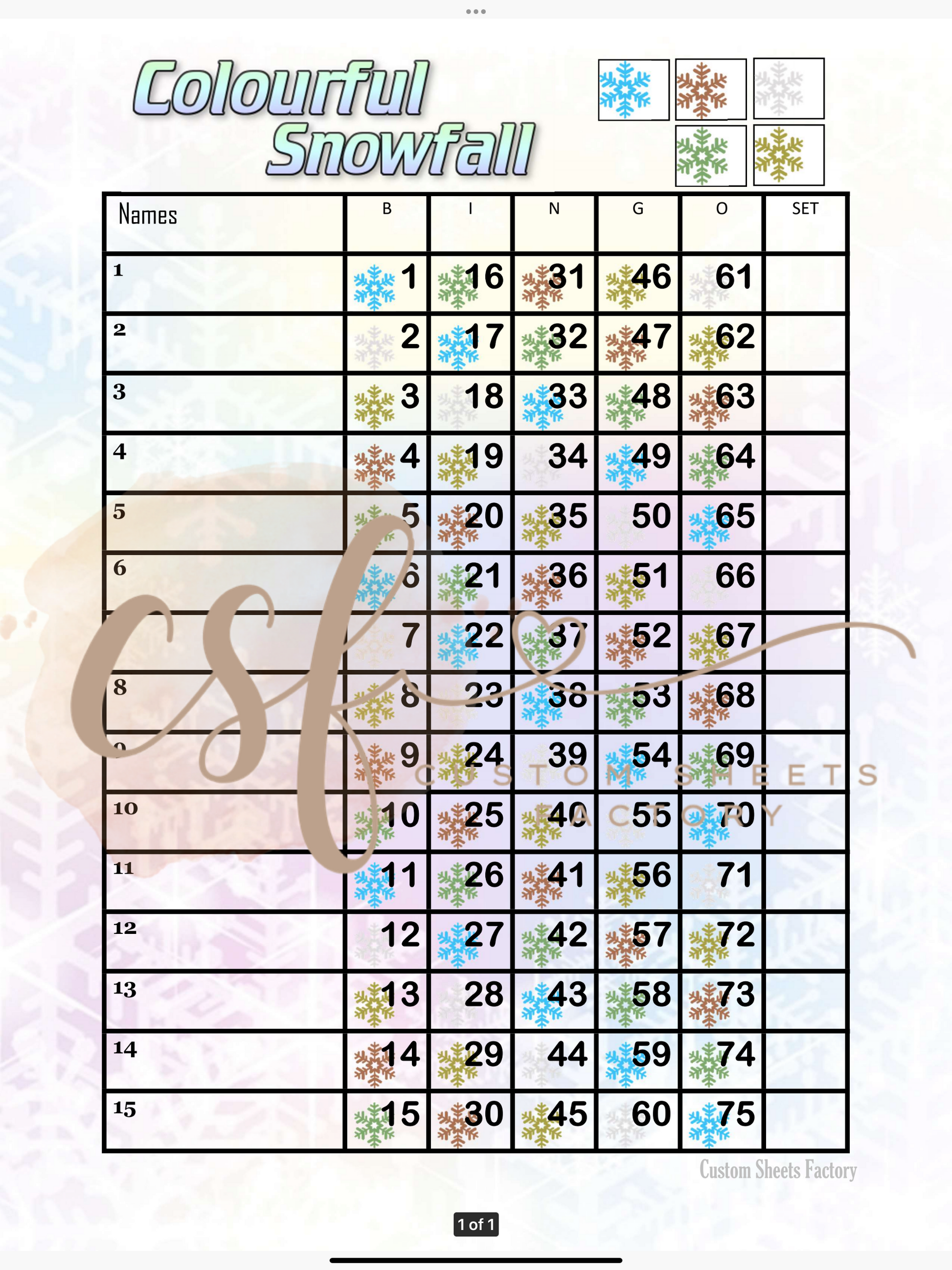 Colourful Snowfall - 15 line - 75 ball