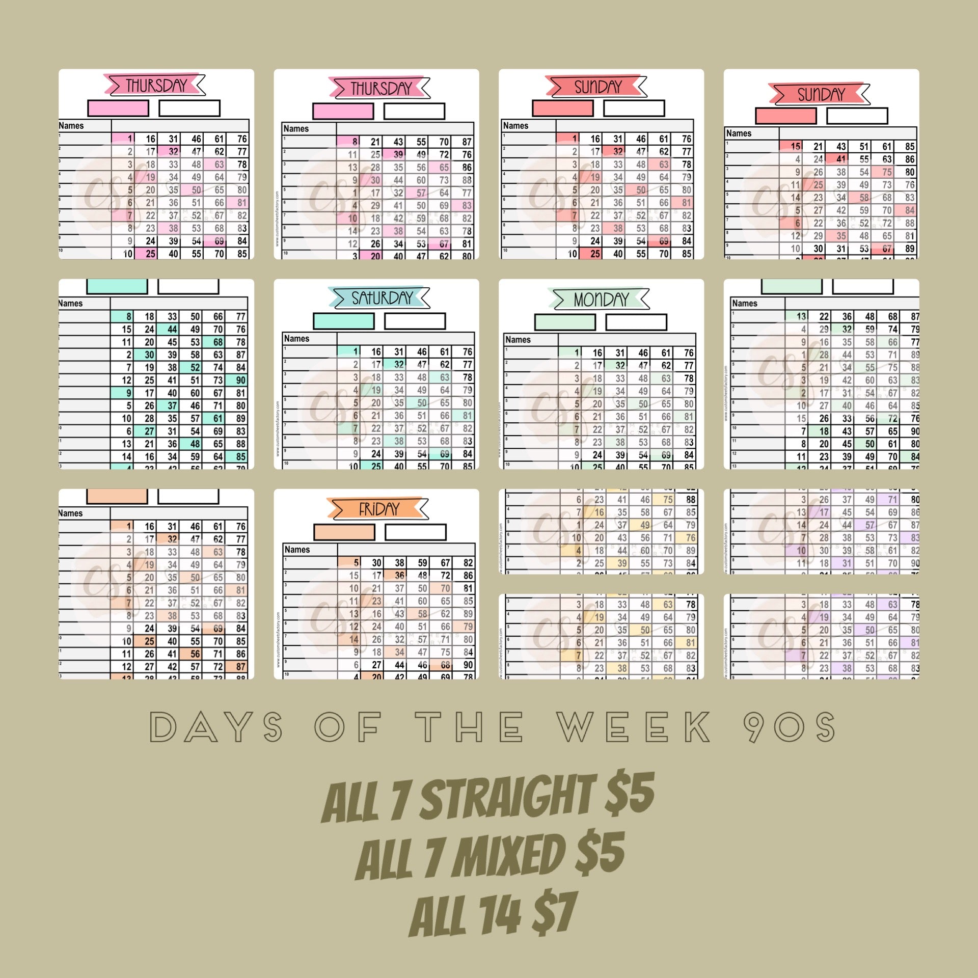 Days of the Week - Various Styles