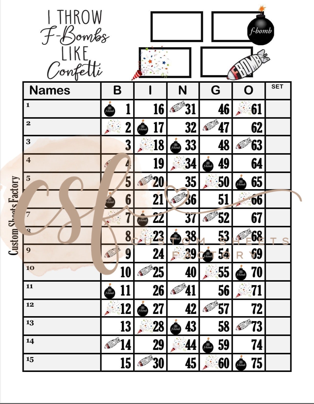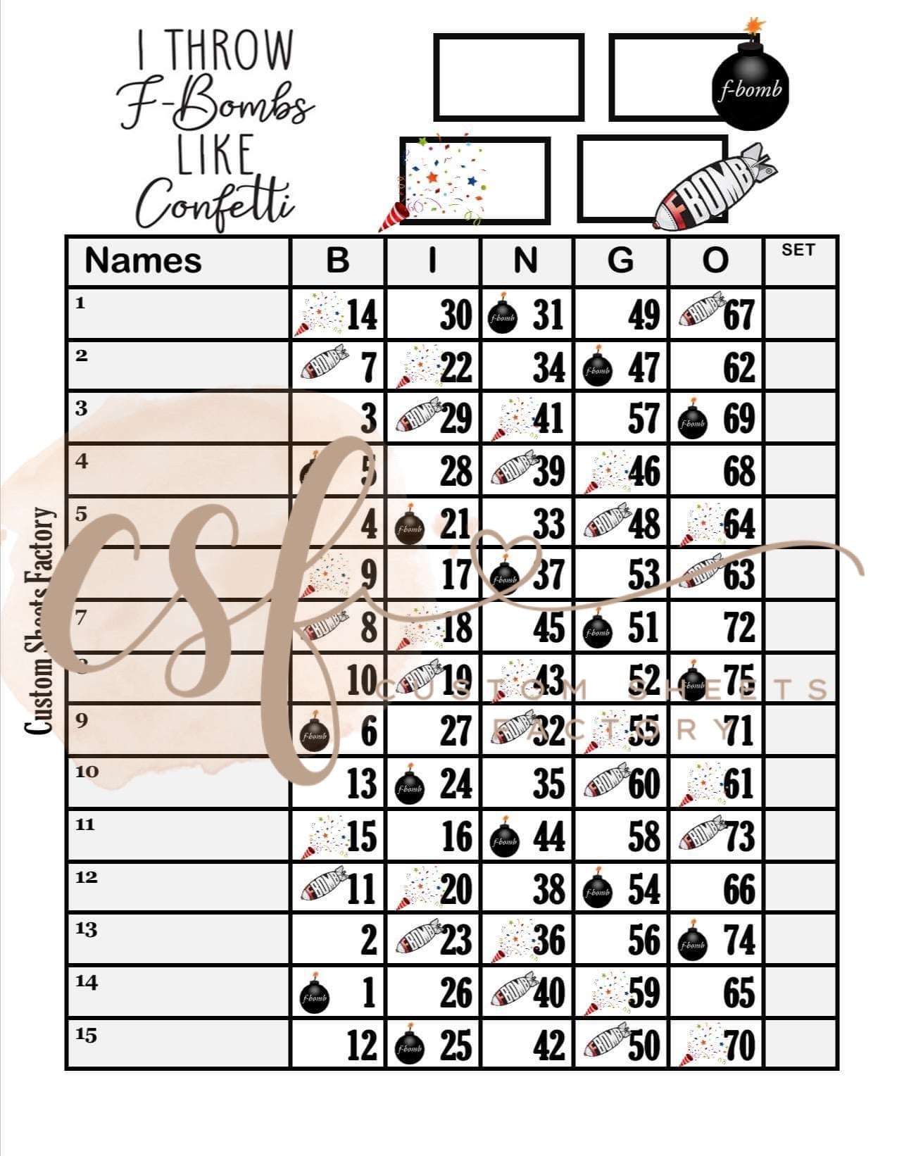 F Bombs - 15 Line - 75 Ball