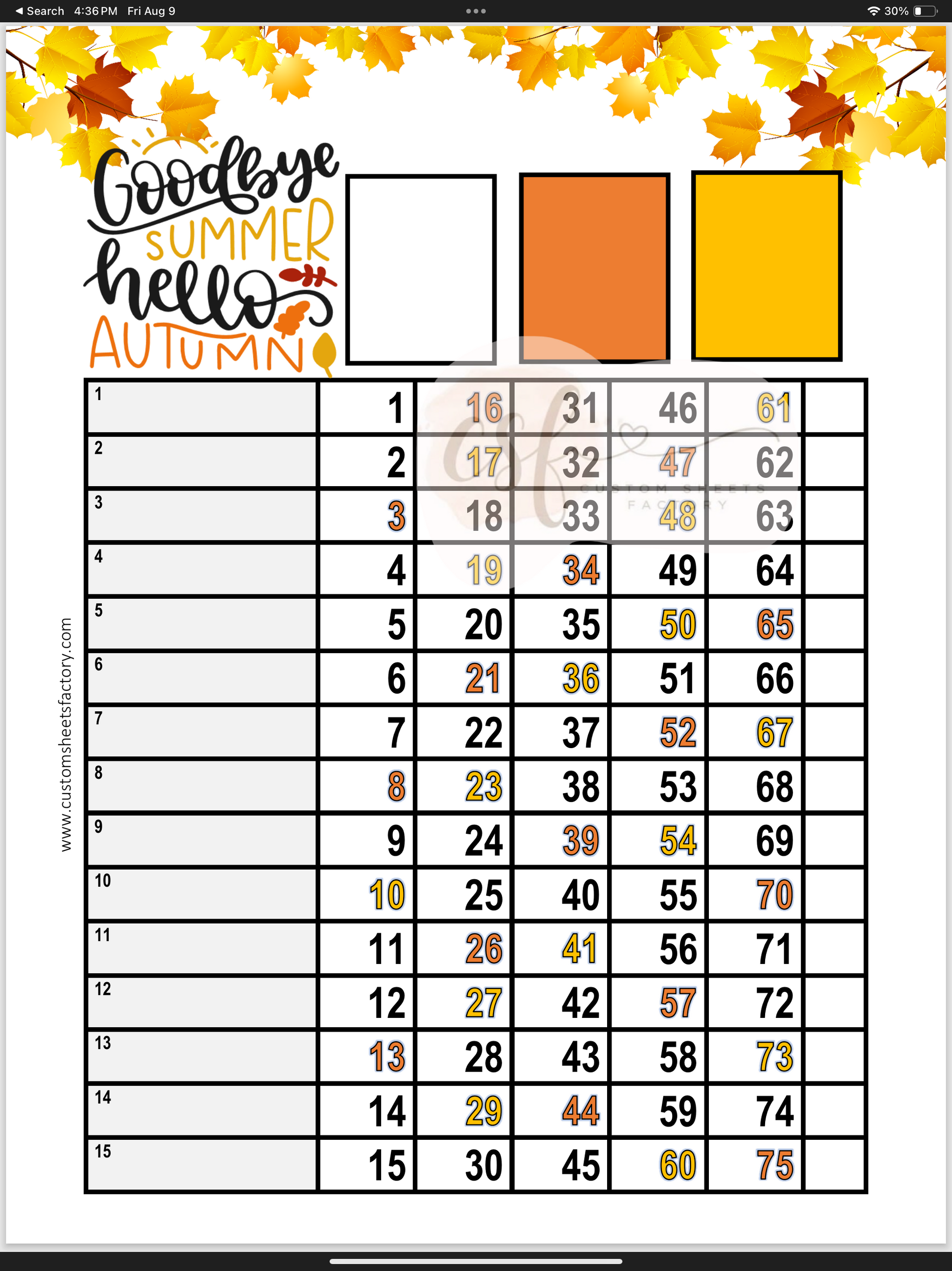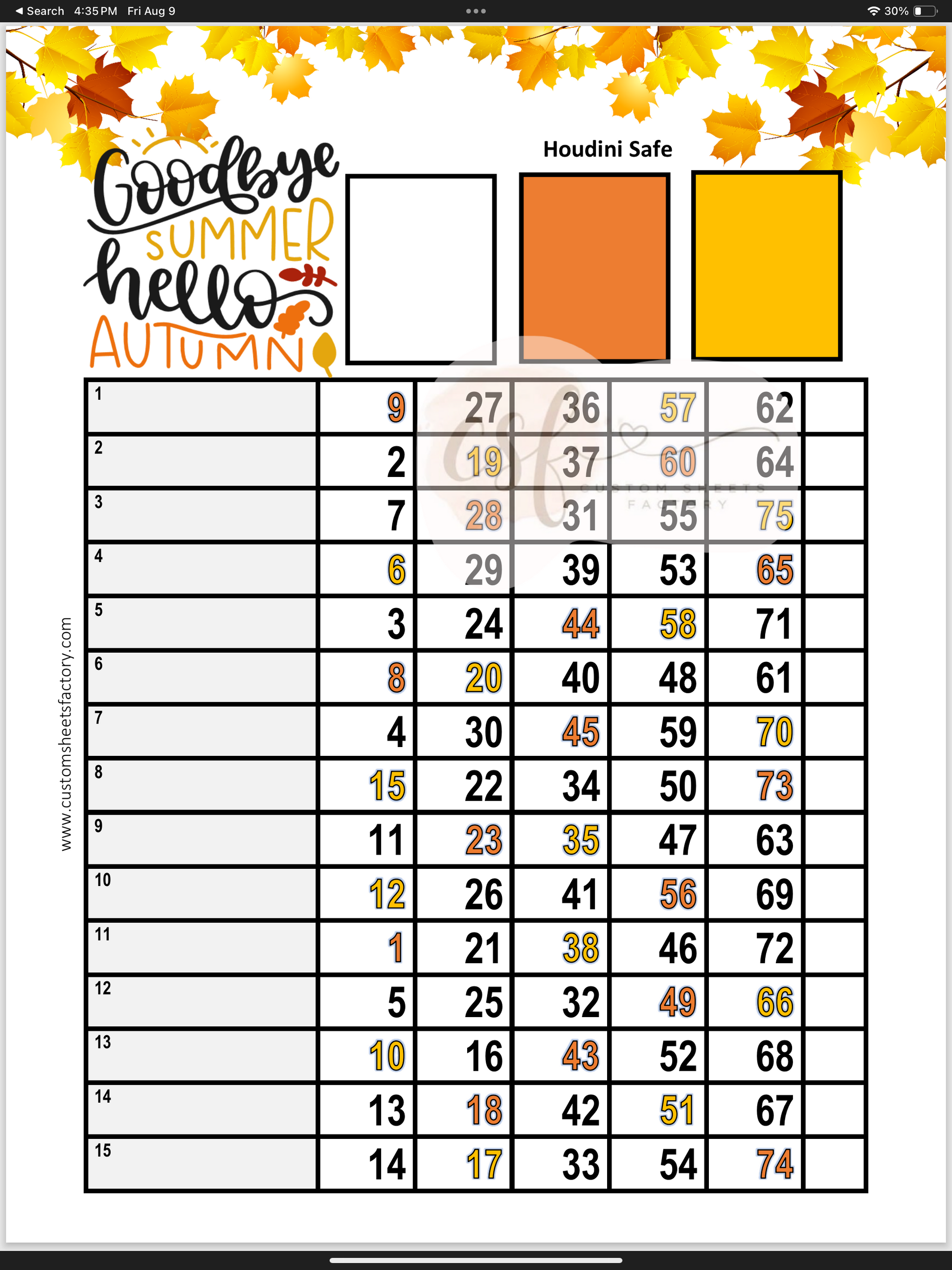 Goodbye Summer Hello Autumn - 15 Line - 75 Ball