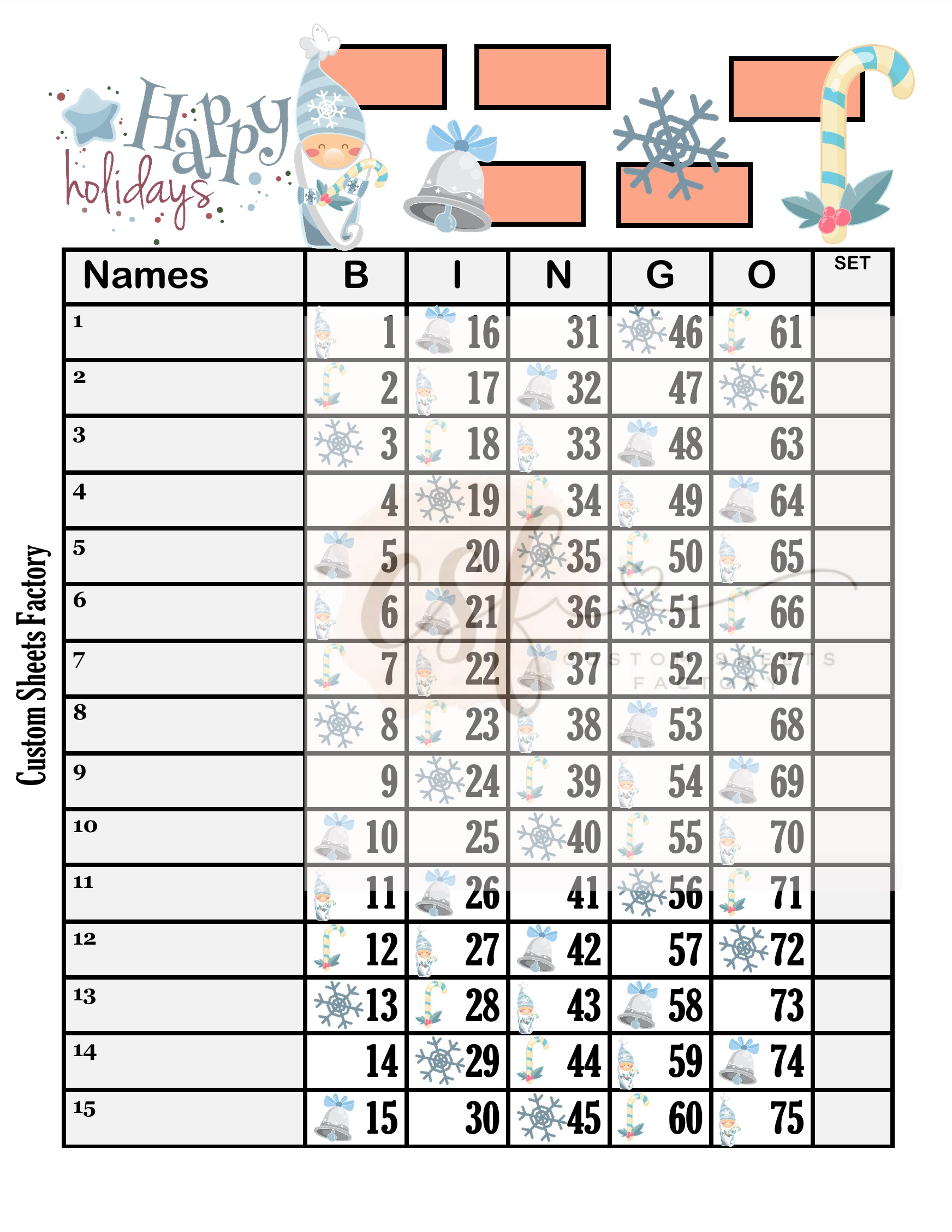 Happy Holidays Gnomes - 15 Line - 75 Ball