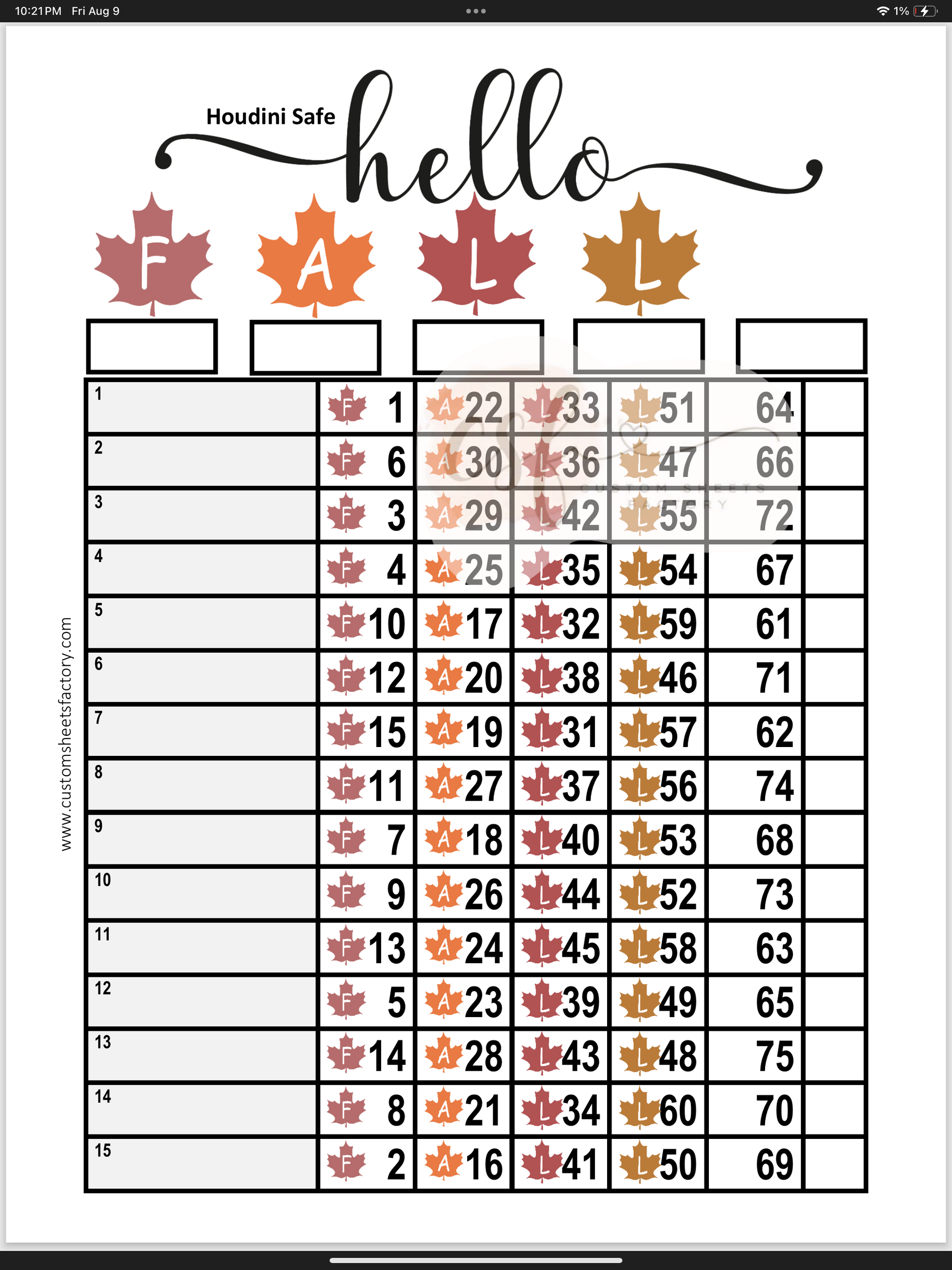 Hello Fall - 15 Line - 75 Ball