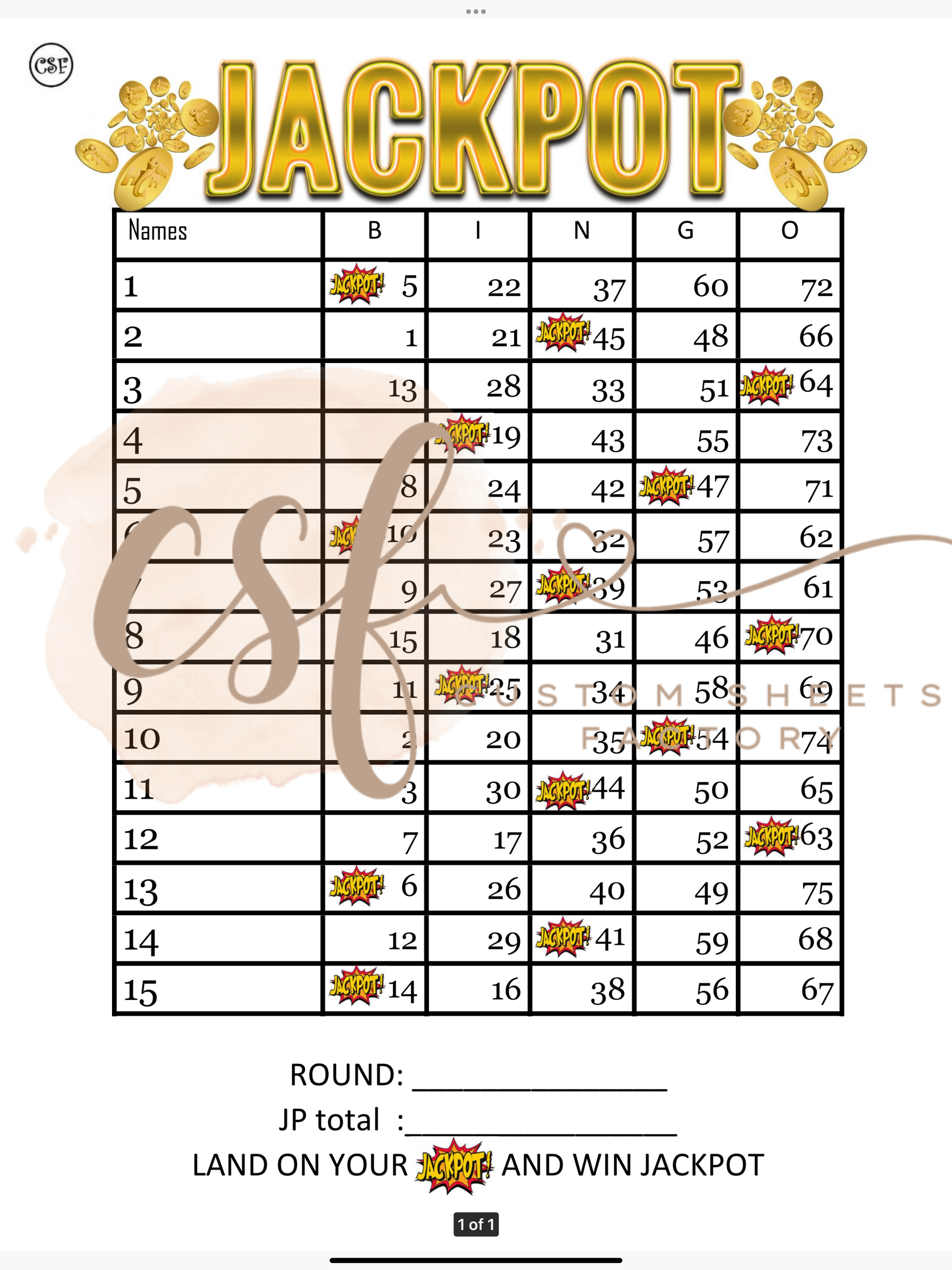 Jackpot Spot Landing - 15 line - 75 ball
