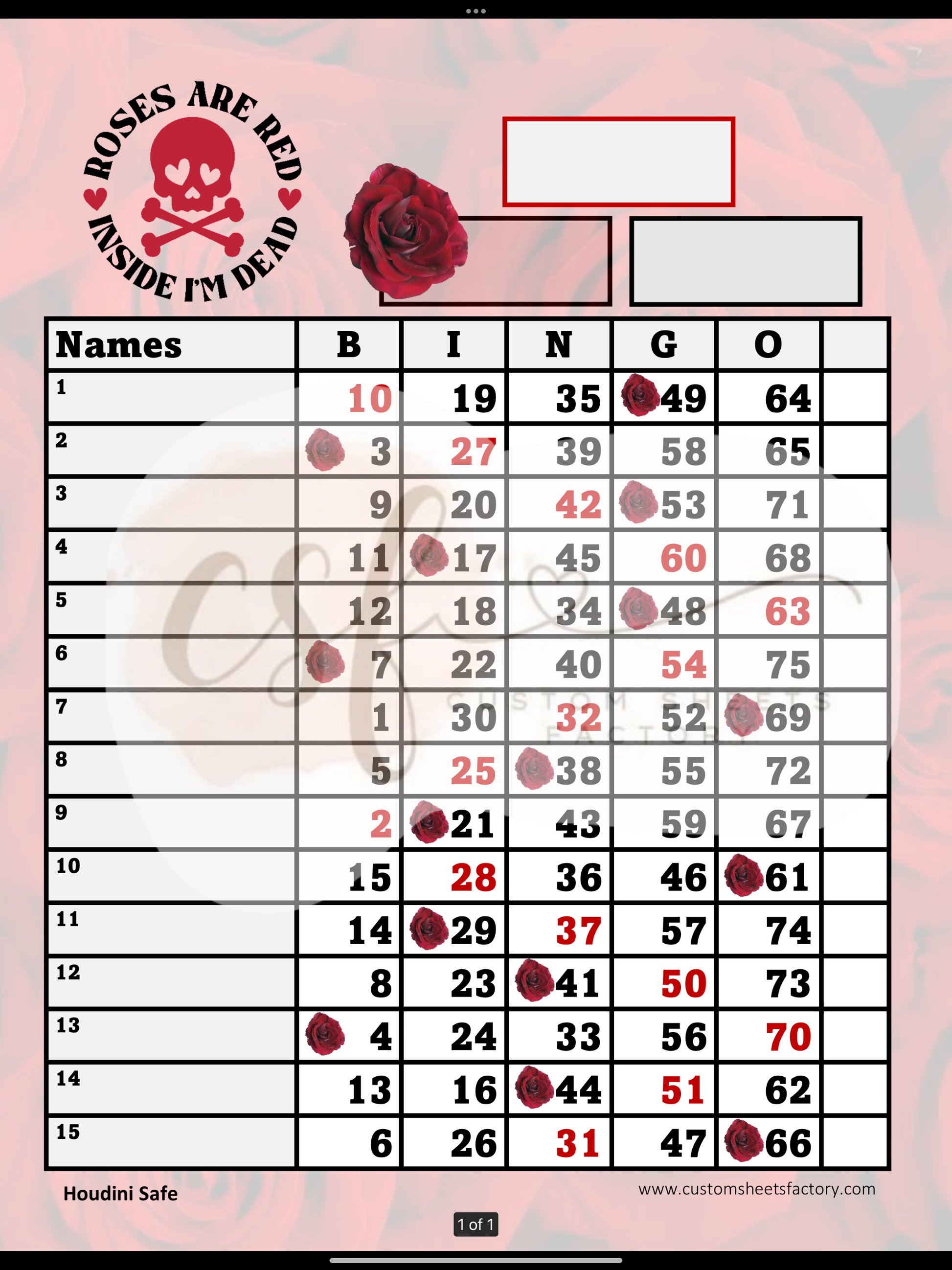 Rose are Red Inside im dead - 15 Line - Straight & Houdini