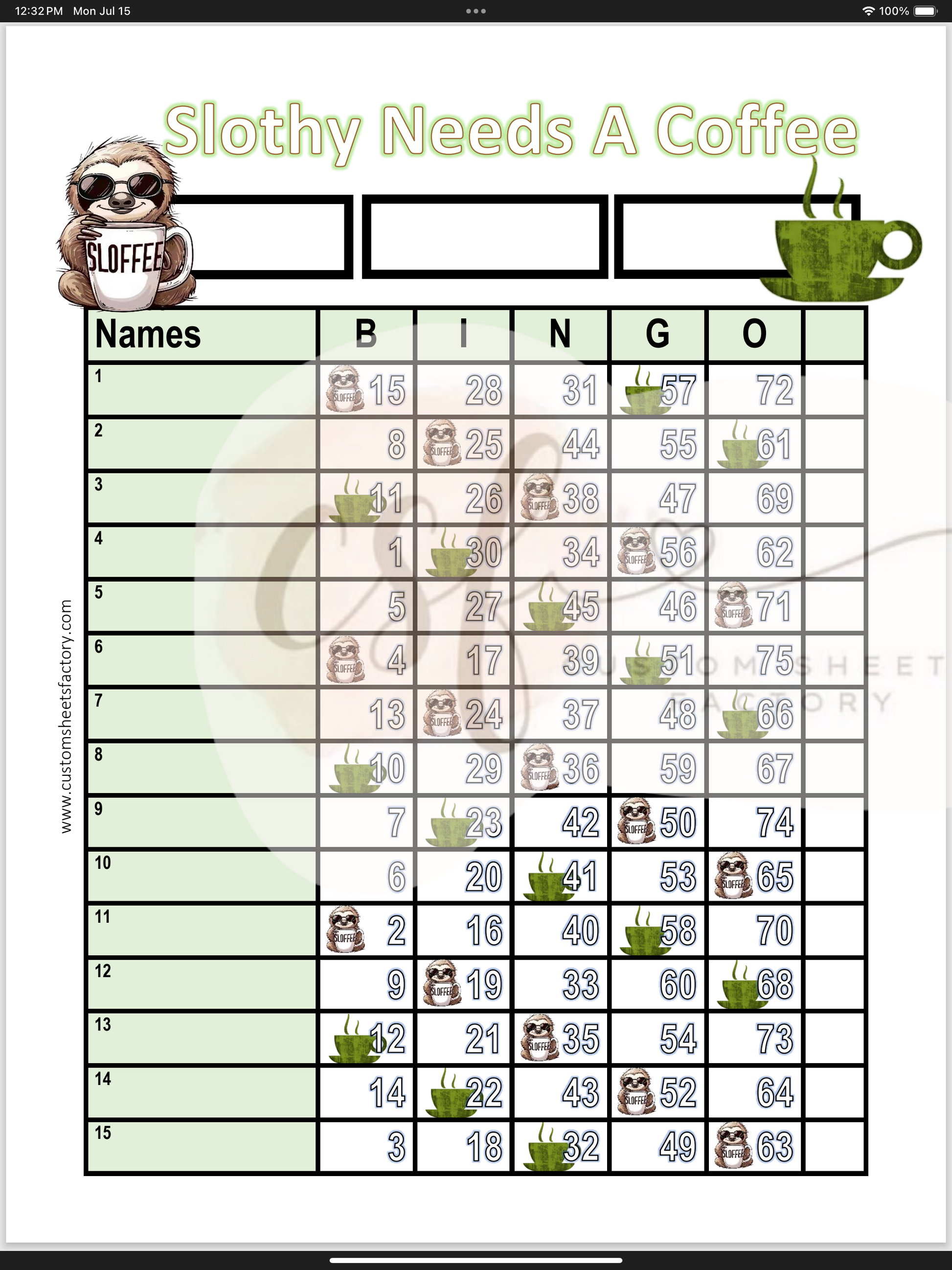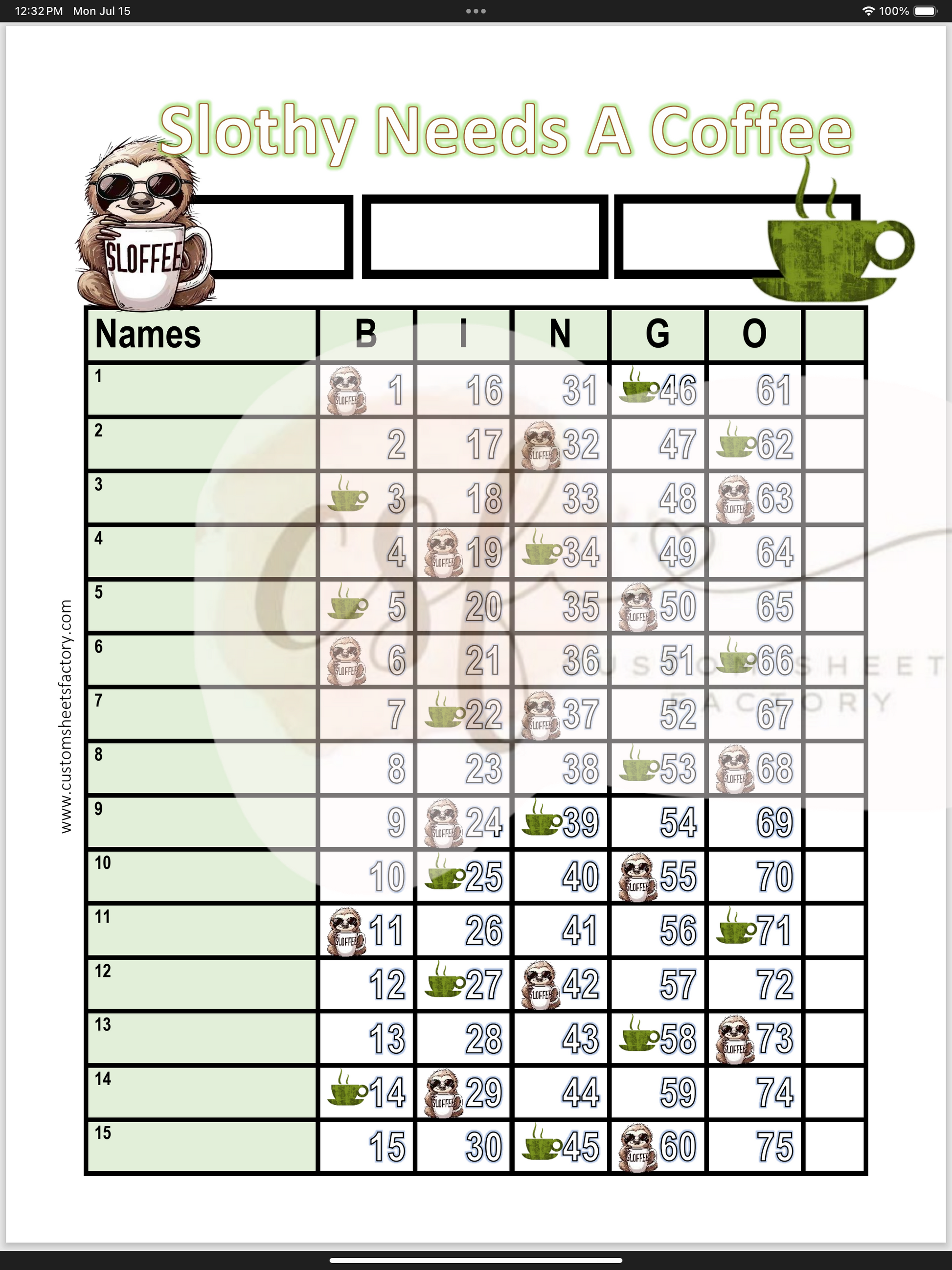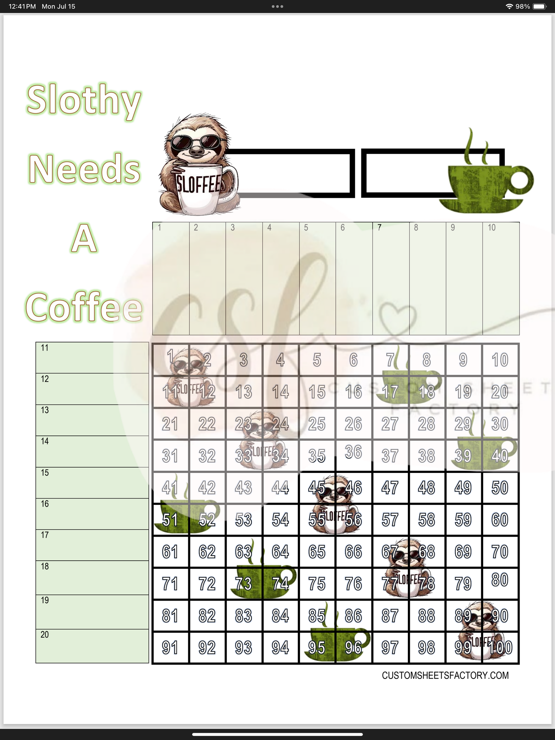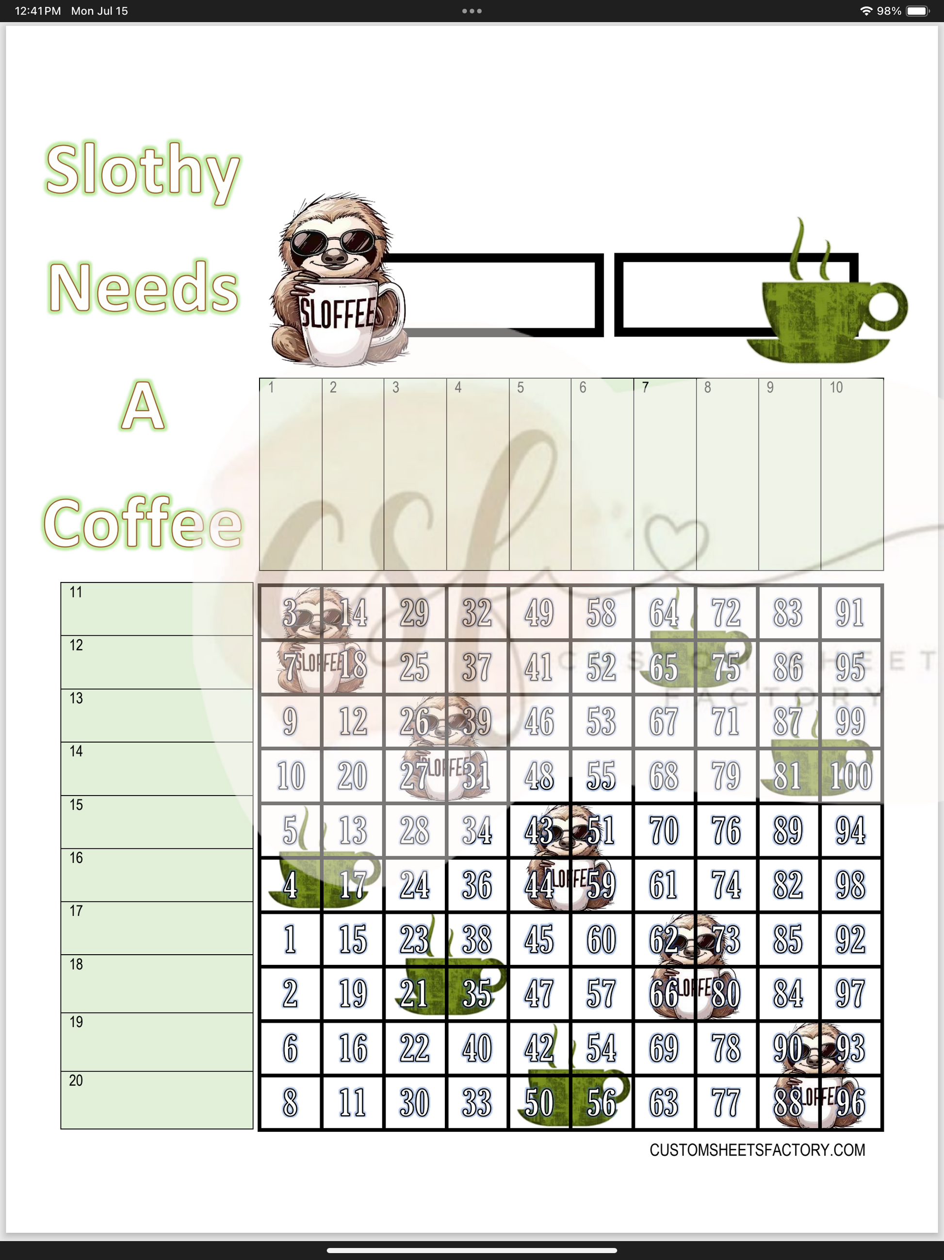 Slothy Needs a Coffee - 15 Line & Grid