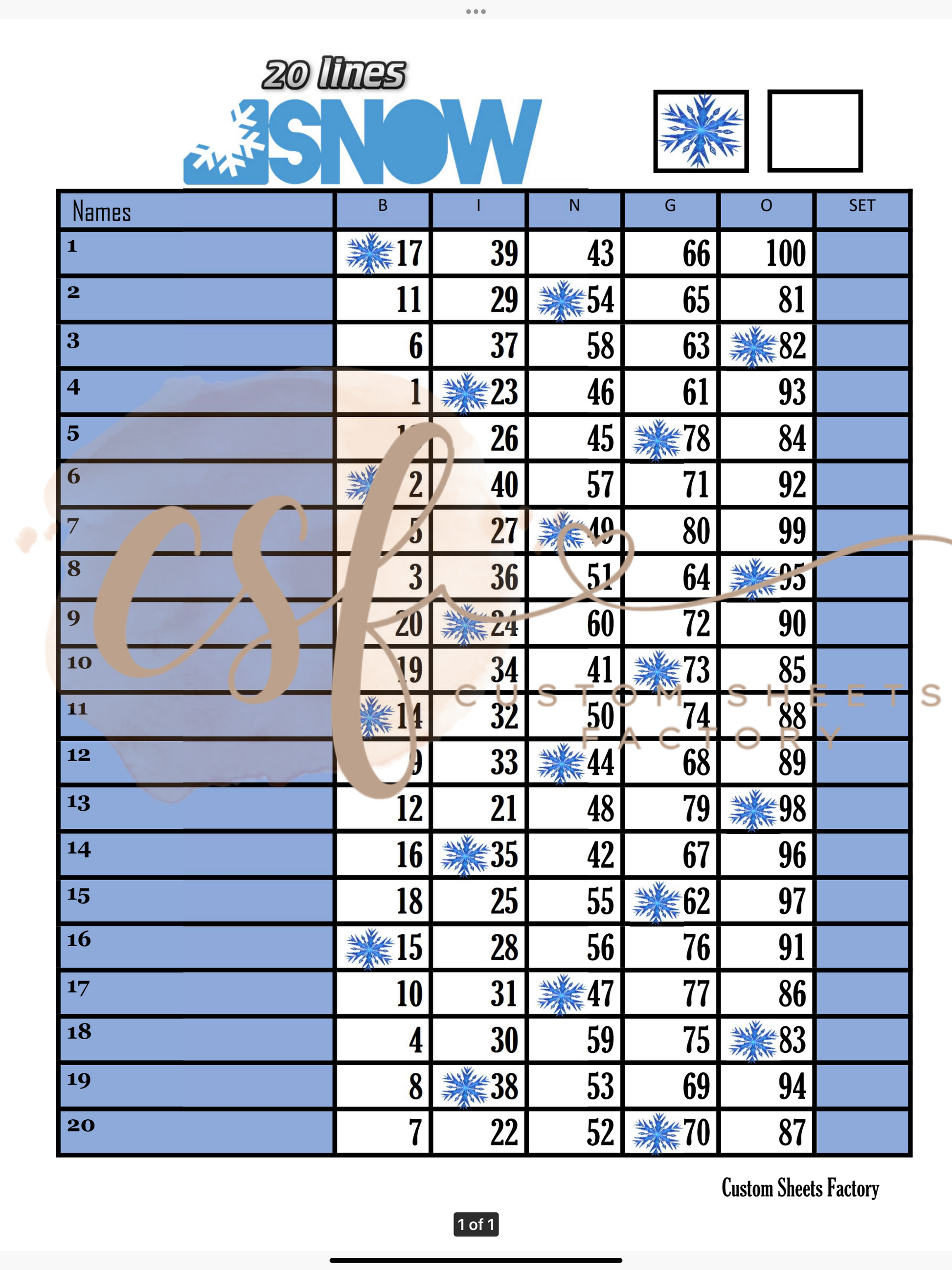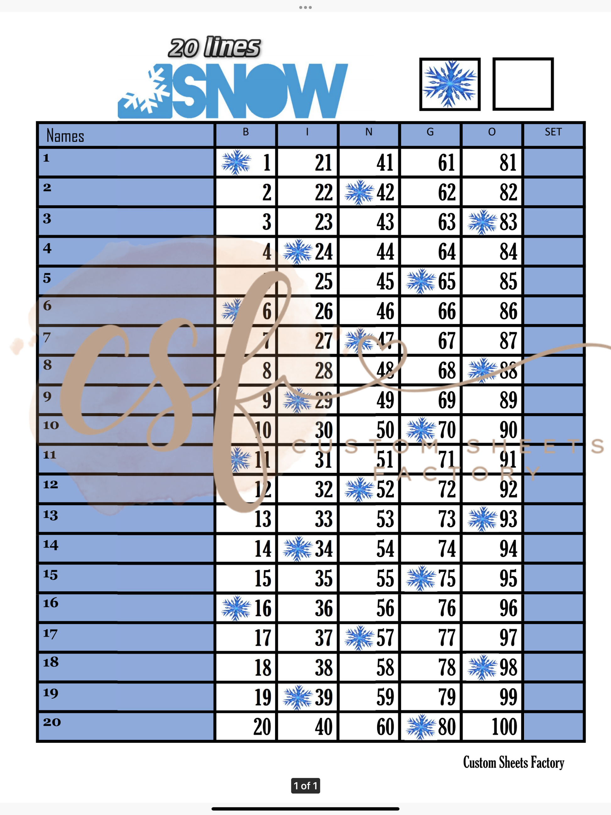 Snowflakes - 20 line - 100 ball