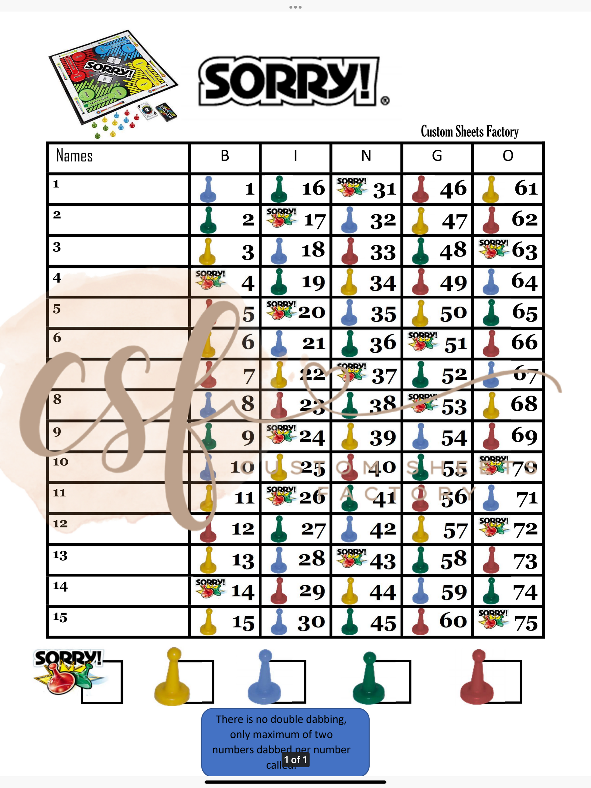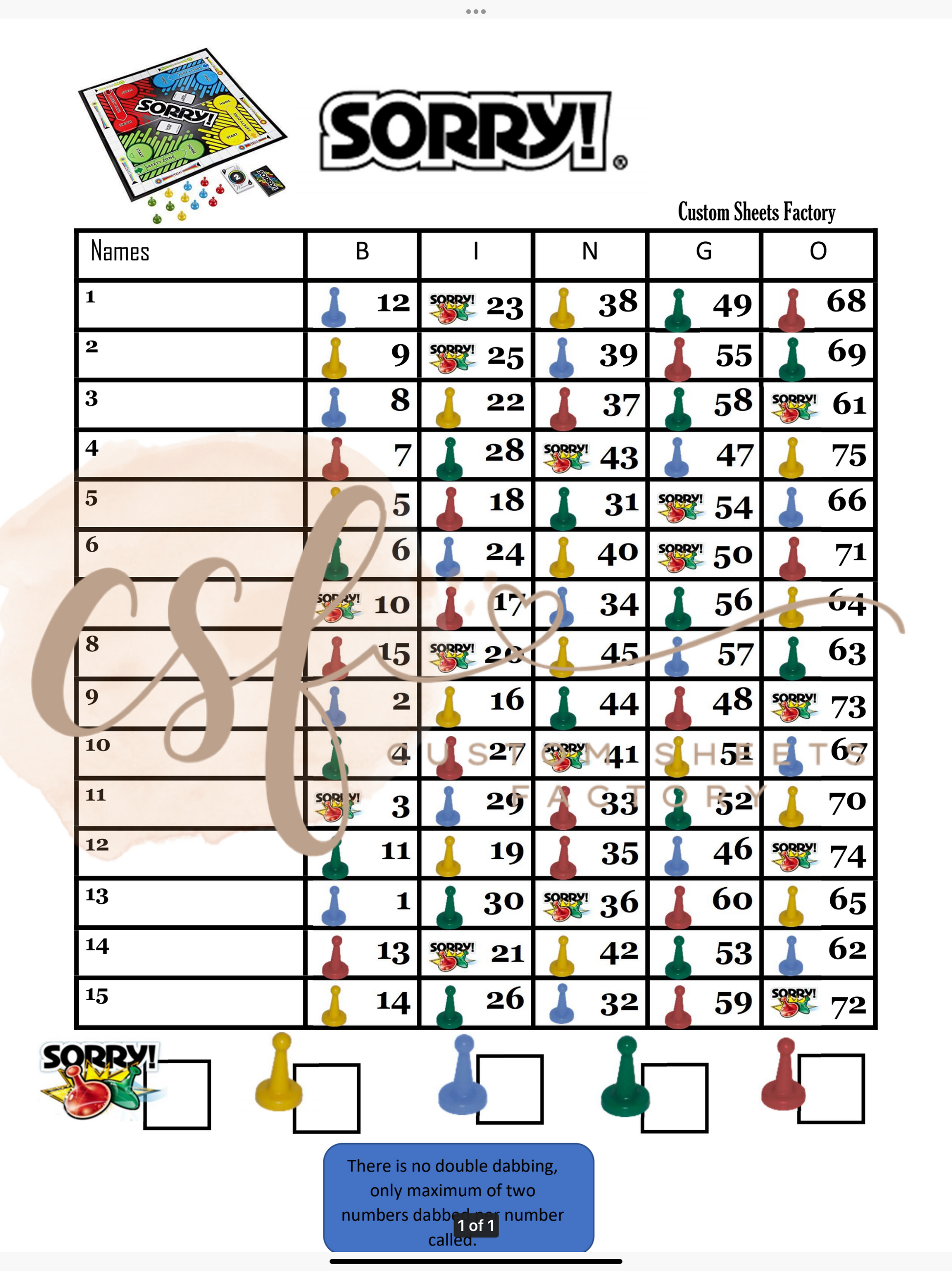Sorry Landing - 15 line - 75 ball