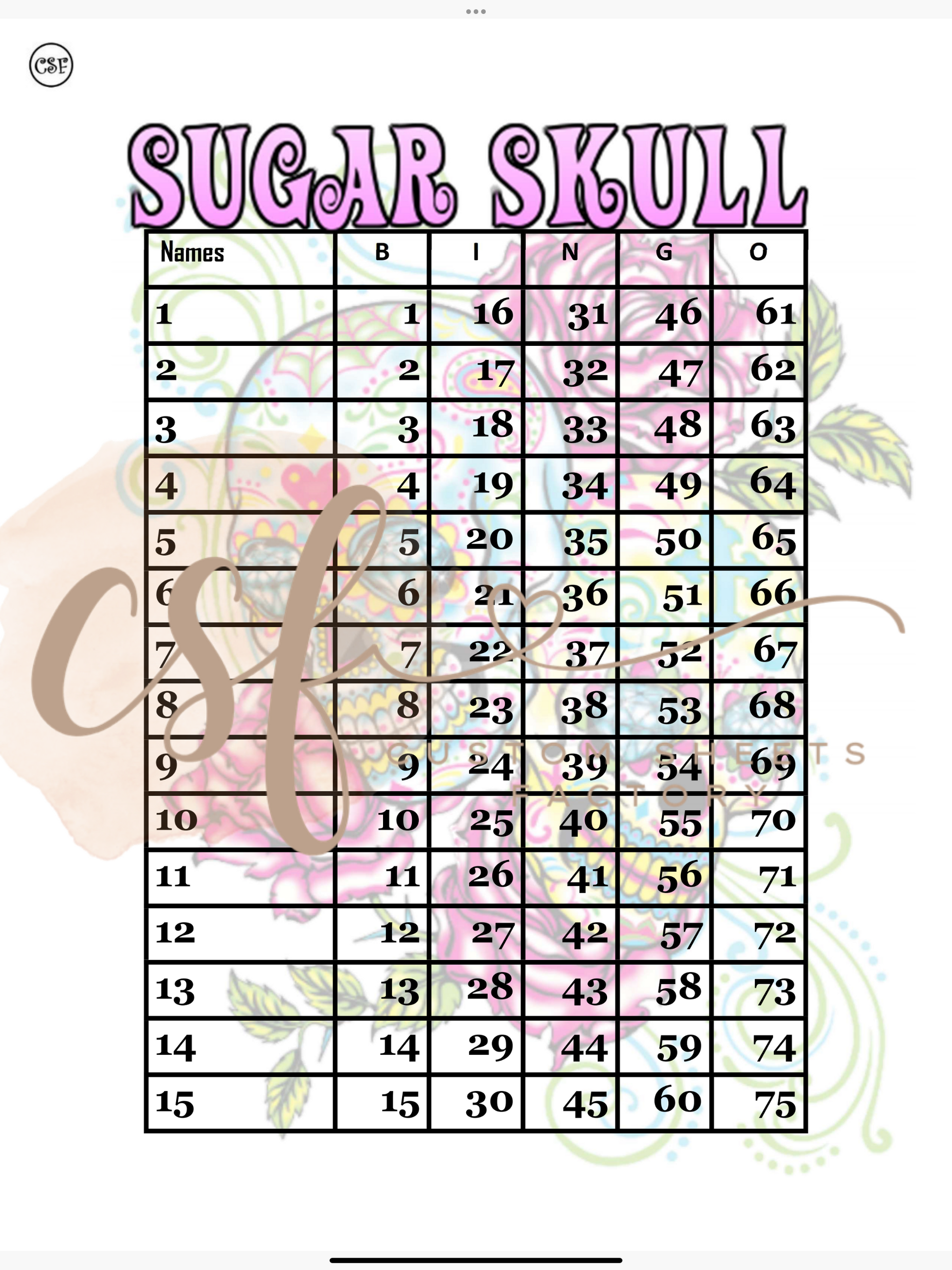 Sugar Skulls - 15 line - 75 ball