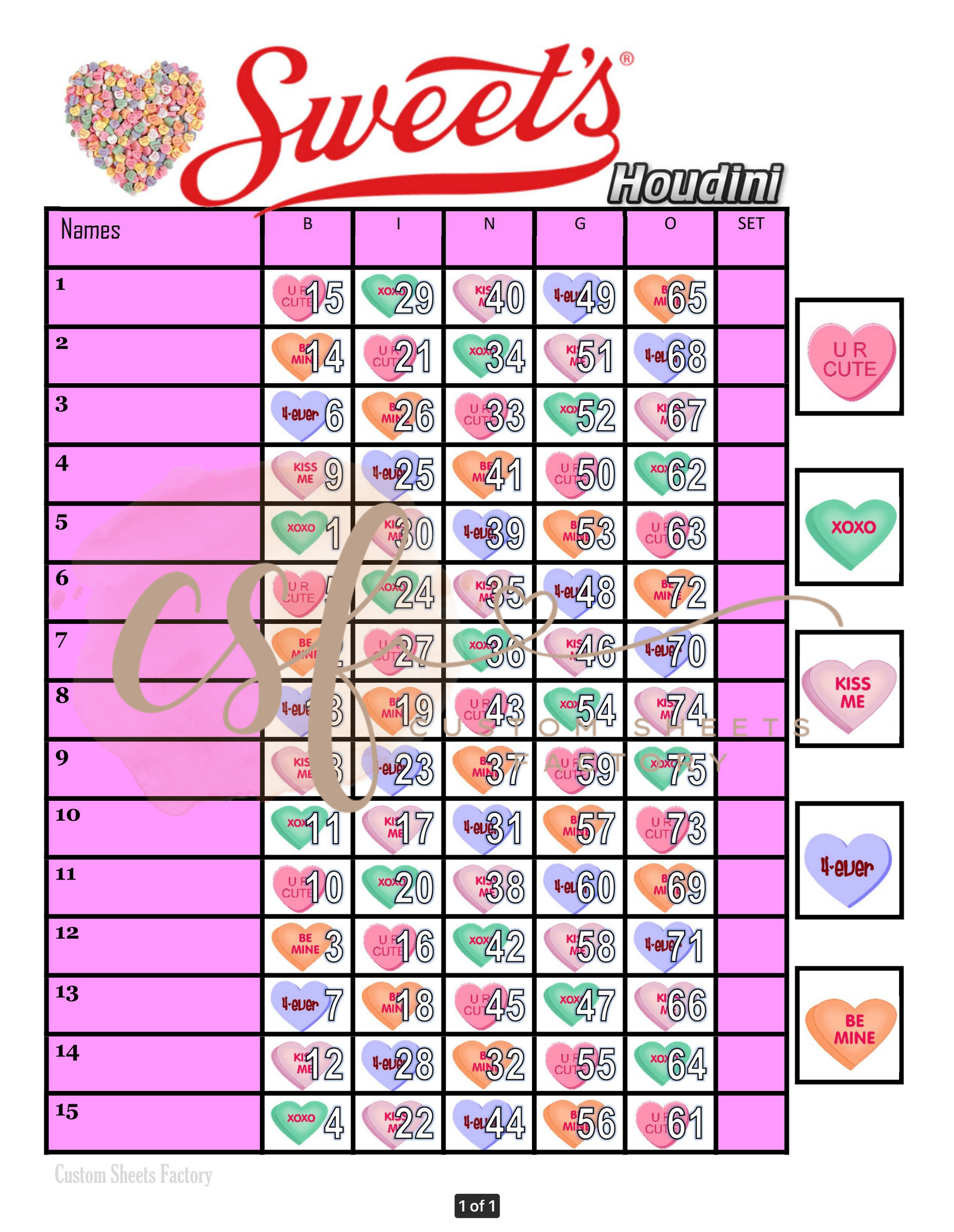 Sweethearts - 15 line - 75 ball