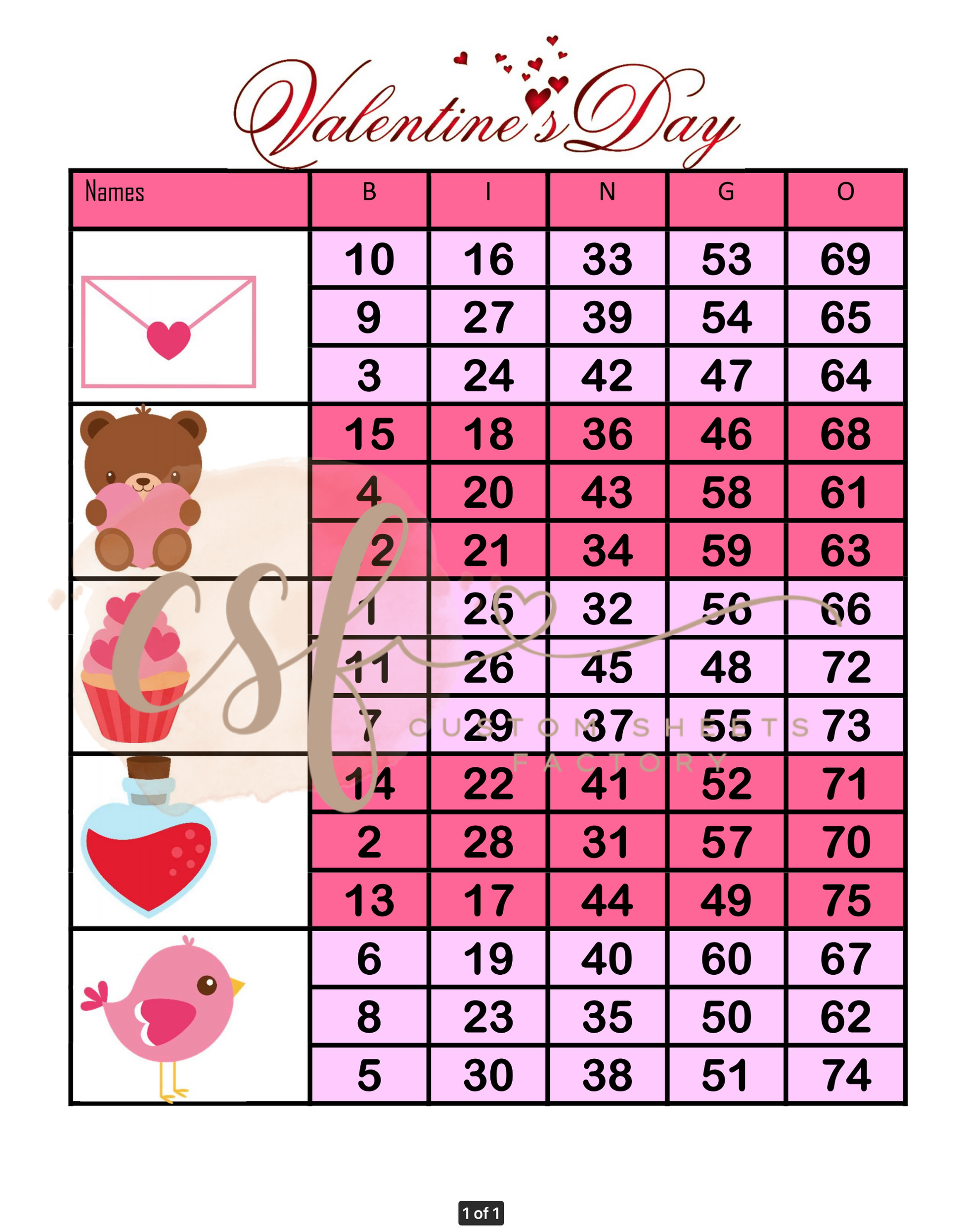 Valentines Day Block - 5 line - 75 ball