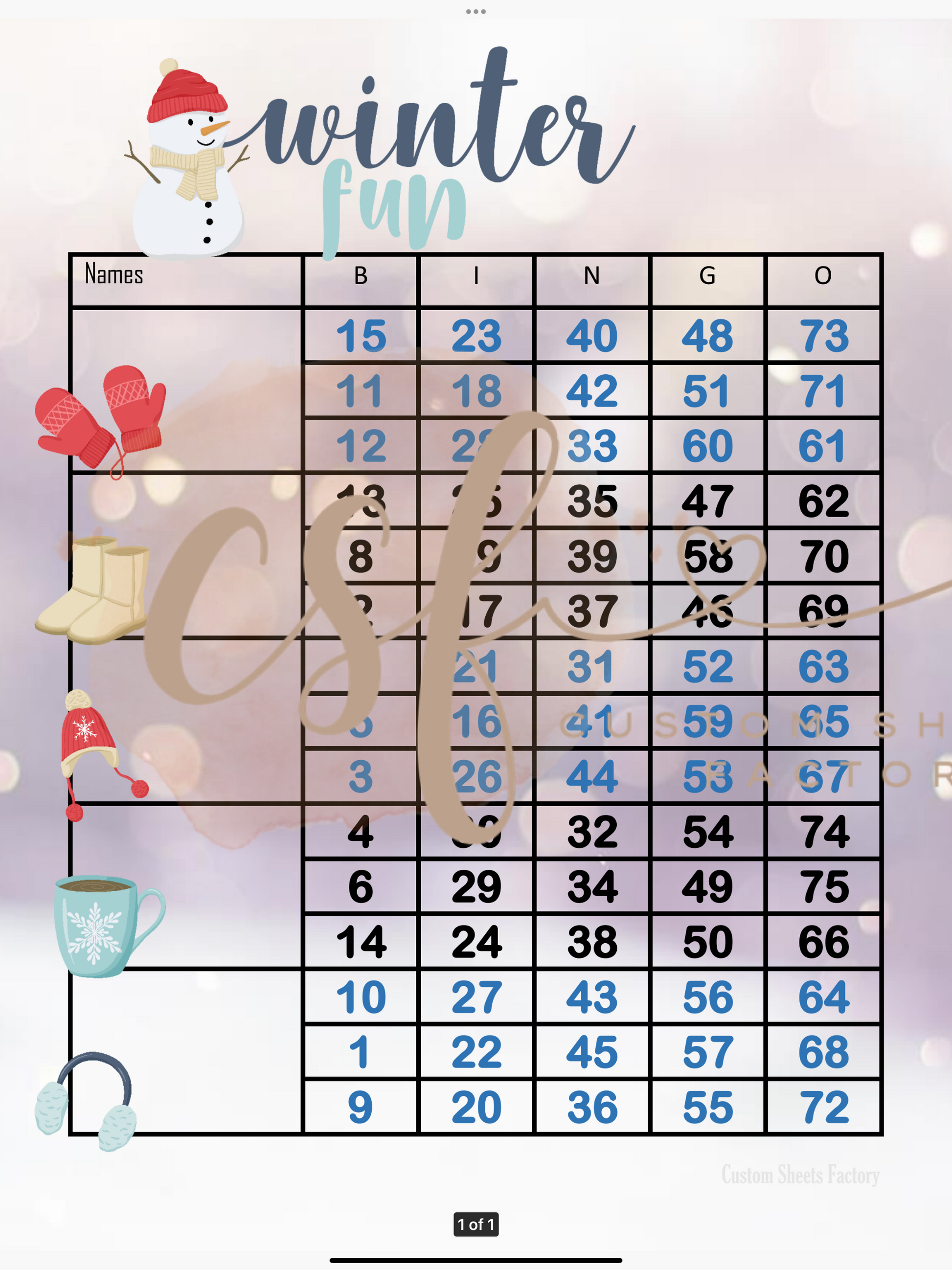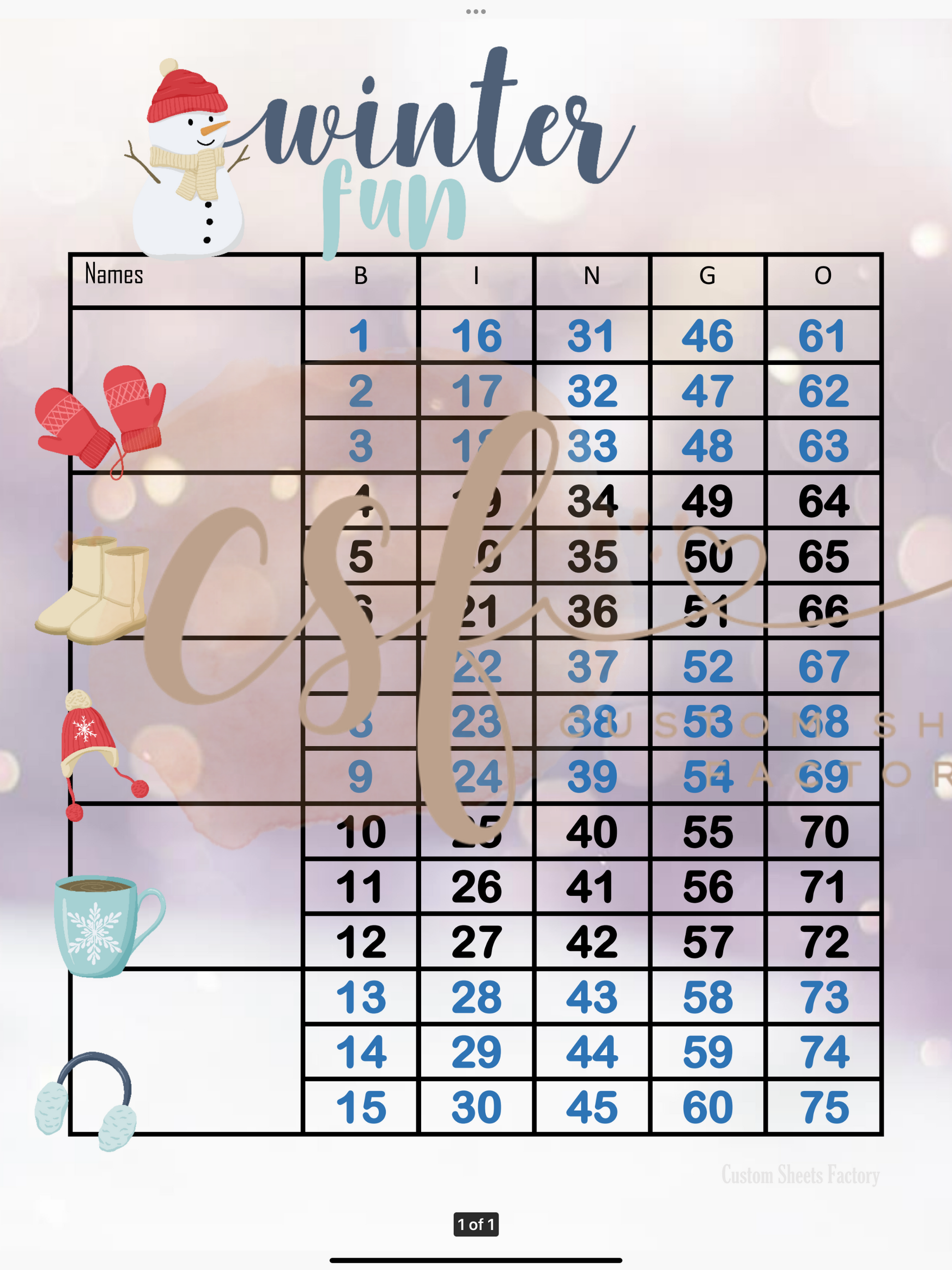 Winter Fun - 5 Block - 75 Ball