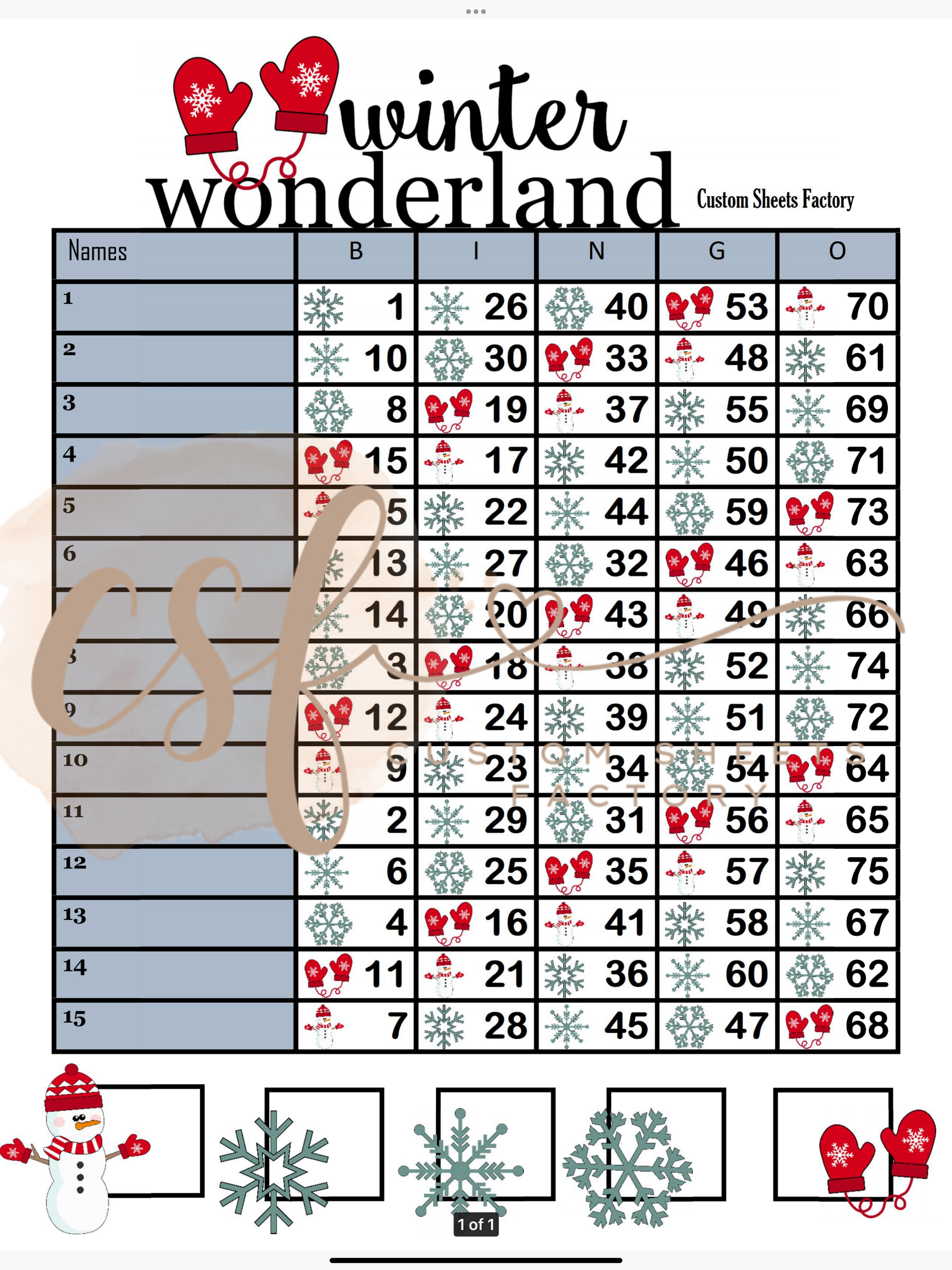Winter Wonderland - 15 line - 75 ball